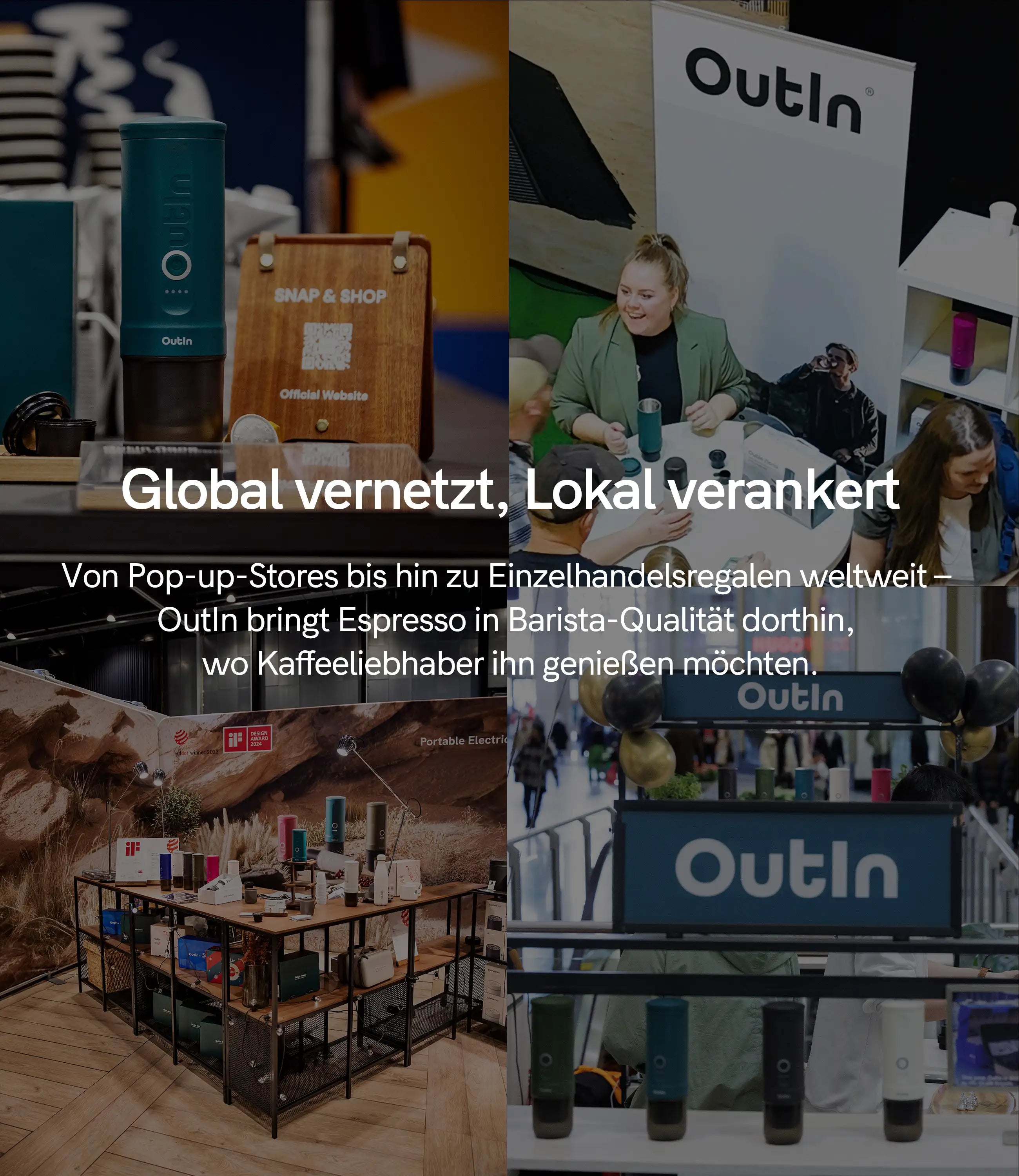 Das Leben steckt voller einzigartiger Kaffeemomente. Ob Sie Ihren Espresso auf einem Berggipfel genießt, am Strand aufbrühst oder einen gemütlichen Morgen zu Hause verbringst – wir freuen uns darauf, zu sehen, wie OutIn Ihren Alltag bereichert.