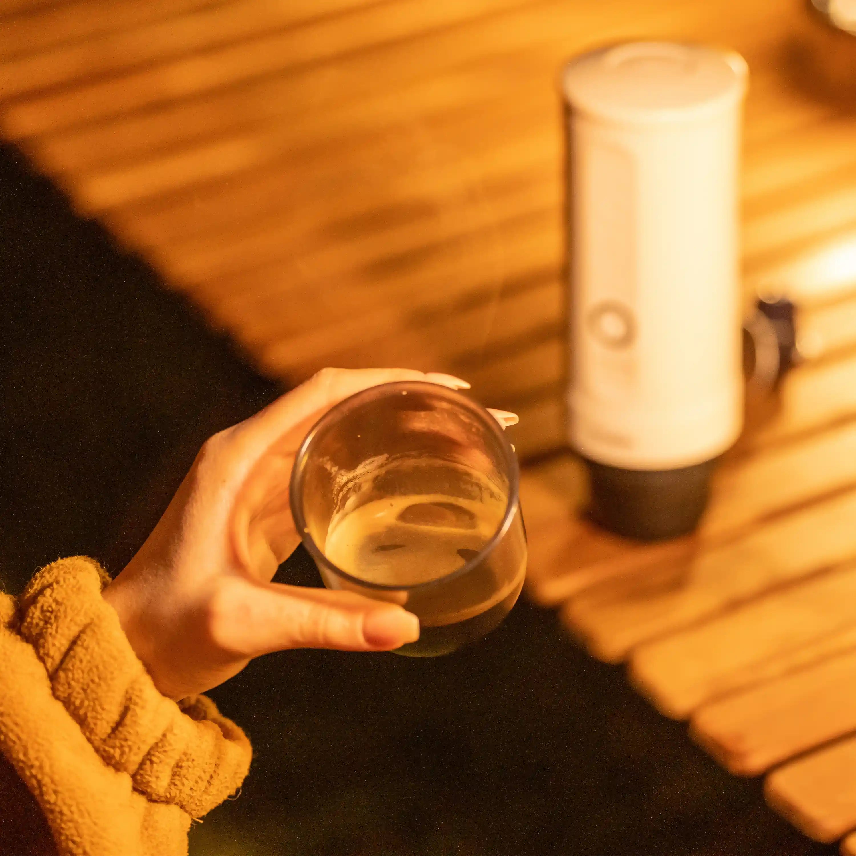 Our nano espresso machine has a precise ceramics chip that can even heat up cold water and extract espresso in about 200s, so drinking a hot espresso can be anywhere without electricity or hot water. Furthermore, people do have different favor requirements or habits for coffee, so Nano is also designed for both ground coffee and capsules. OutIn's well-designed high-pressure extraction method is like your barista friend, paying attention to your palate. Our Nano has 20 bars of pump pressure, while others usually will be 9 bars. With the advantages of the pump system, our device can make the same standard quality espresso as a professional household espresso machine. Many coffee etenthuasic and baristas are amazed by the richer crema made by our mini, and even make various coffee lattes on top of the crema.Mentally, people's memory of coffee is not limited to the taste of coffee, but also the occasion and weather where coffee exists, family and friends to accompany. Thus, homemade coffee or having a cup of coffee outside with friends or family becomes an indispensable social activity. OutIn is eager to create a more portable but professional household device in order to fulfill consumers' experience, wherever OutIn family is, they will always enjoy.