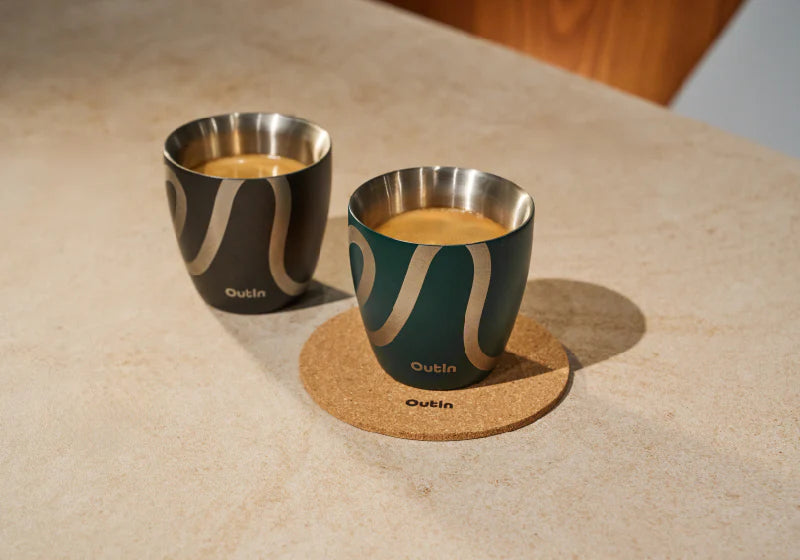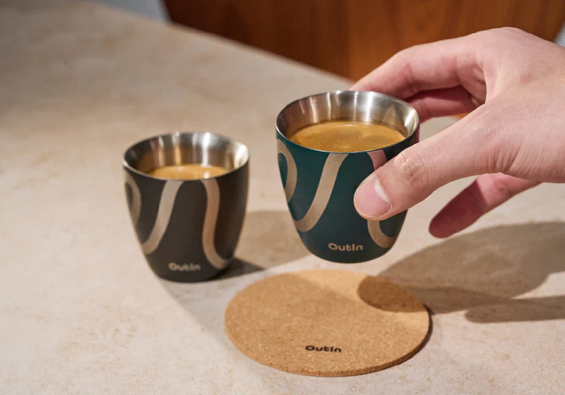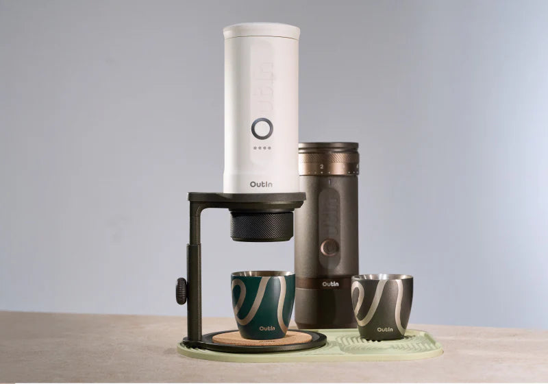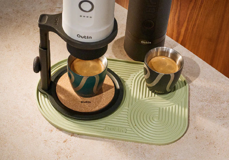 Kombinieren Sie das zweifarbige Espresso-Set mit Ihrem OutIn Nano und dem Universal Coffee Stand für das ultimative tragbare Kaffee-Setup. Ziehen Sie einen frischen Espresso direkt in die Tasse – perfekt auf die Ausgabe des Nano abgestimmt – und schaffen Sie so überall eine nahtlose Barista-Station.