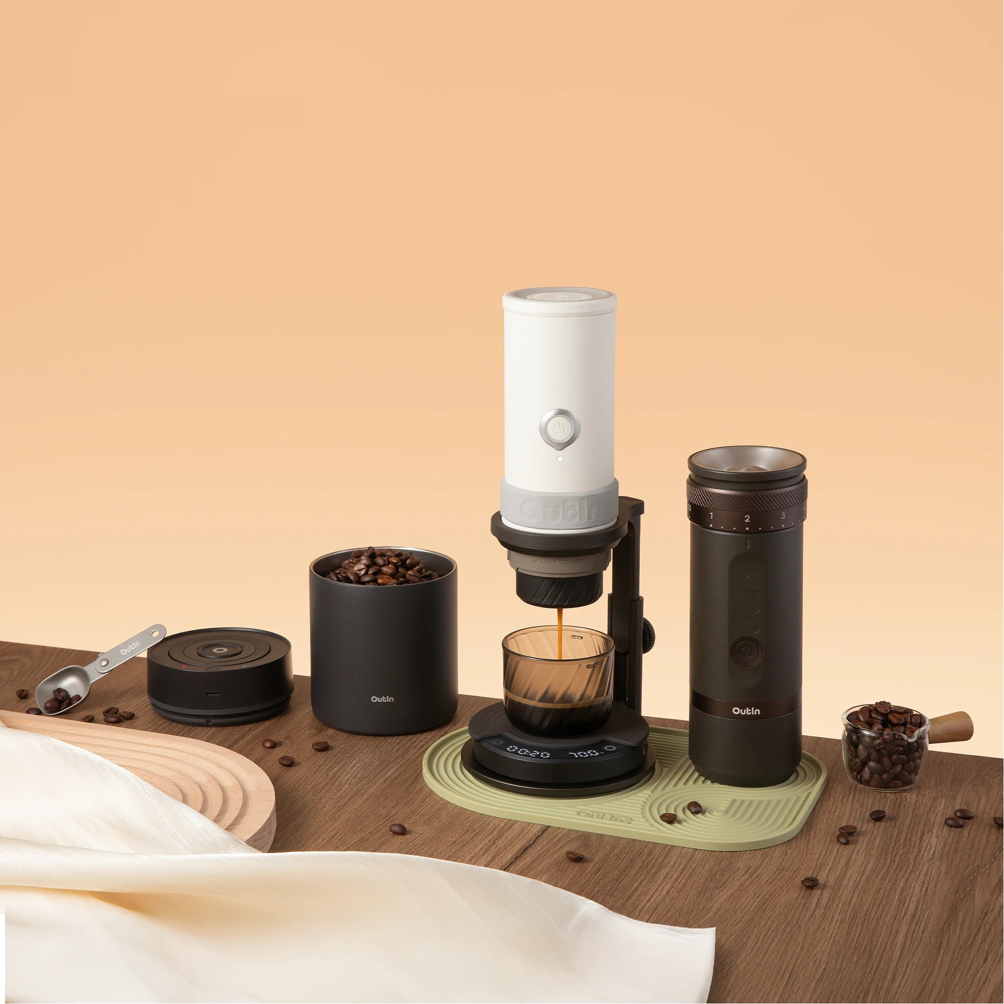 Mit OutIn Mino heben Sie Ihr Setup auf ein neues Niveau. Es fügt sich nahtlos in Ihren Workflow ein – vom Aufbewahren der Bohnen über das Wiegen und Mahlen bis hin zum perfekten Espresso-Shot – und veredelt jeden einzelnen Brühvorgang.