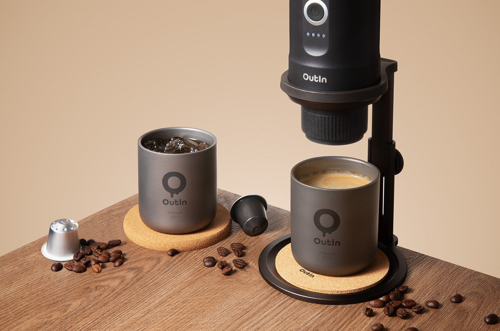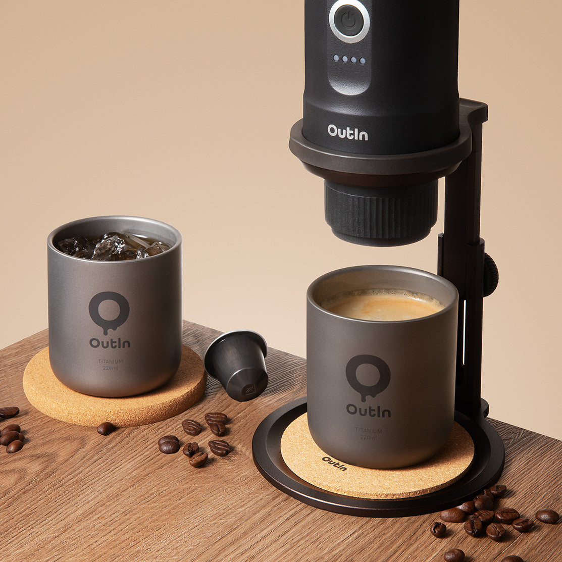 Heben Sie Ihren Kaffeegenuss auf das nächste Level mit dem ultimativen Trio: der Titan-Kaffeetasse, der eleganten OutIn Nano in Space Grey und dem Universal-Kaffeeständer. Mit diesem Setup extrahieren Sie Ihren Espresso direkt in den Becher aus reinem Titan. So bewahren Sie das unverfälschte Aroma und die ideale Temperatur Ihres Kaffees – verpackt in einem ultraleichten, reisebereiten Design.